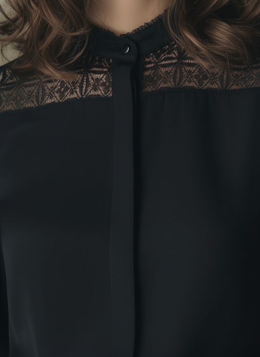 The Elegant Noir Lace-Panel Blouse