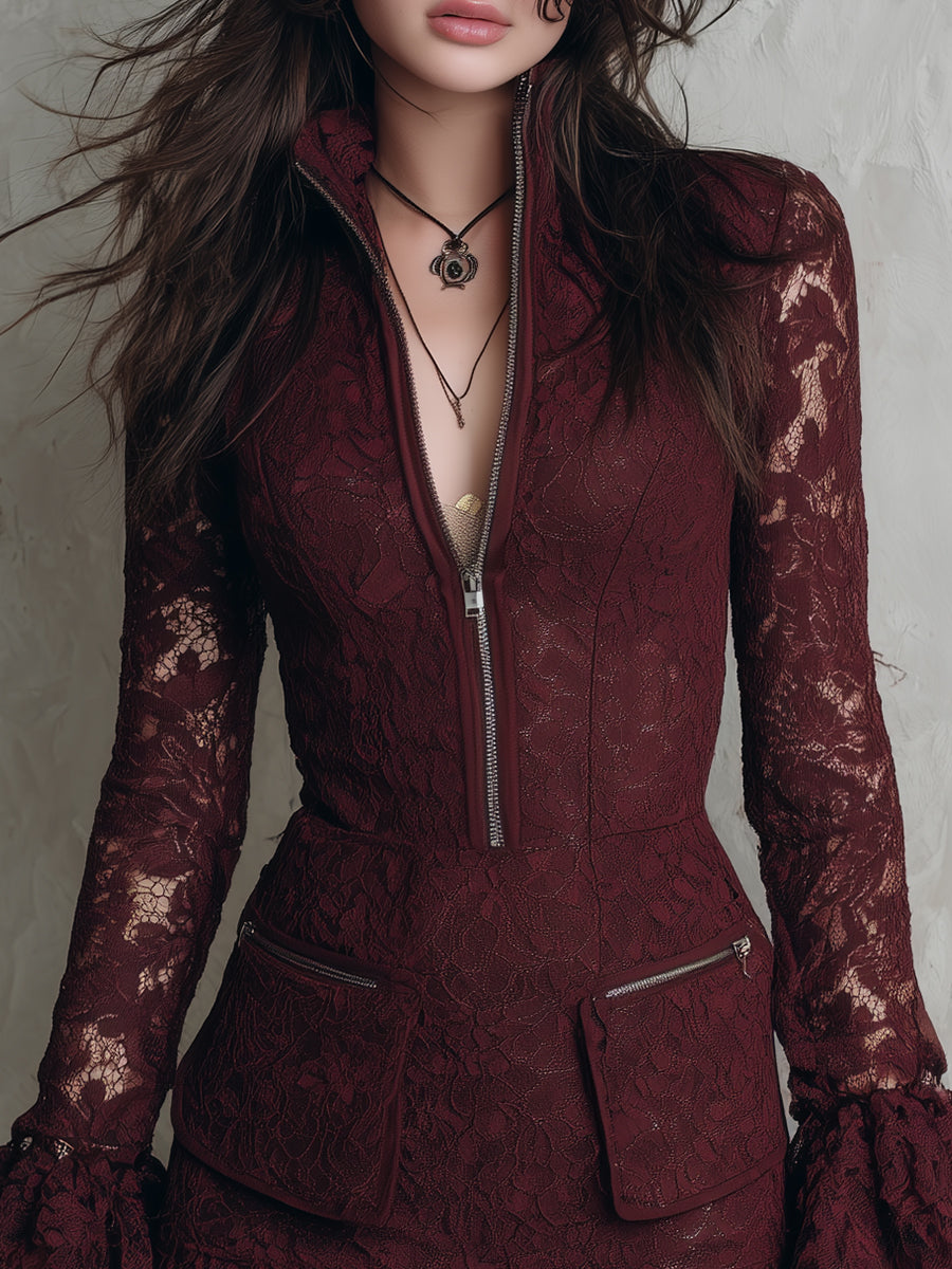 Step into the world of bohemian elegance with the Bohemian Lace Ruffled Cuffs Patch Pocket Mini Dress. This exquisite mini dress brings a charming fusion of vintage aesthetics and modern-day style, making it an ideal choice for those who adore classic yet trendy fashion statements.