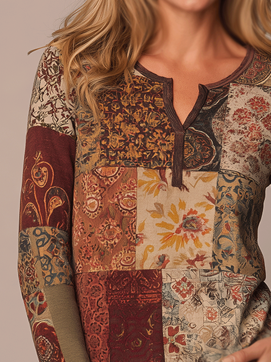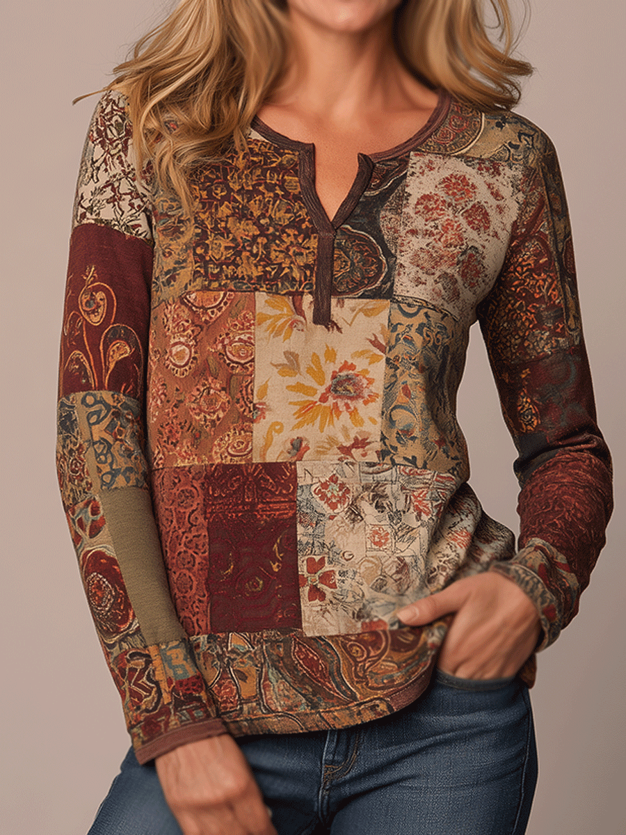 The Bohemian Mixed Floral Long Sleeve Henley is an ideal choice for those who appreciate unique patterns and comfortable wear. Its versatile design makes it a valuable addition to any closet, offering endless styling possibilities for casual outings or artistic expressions.