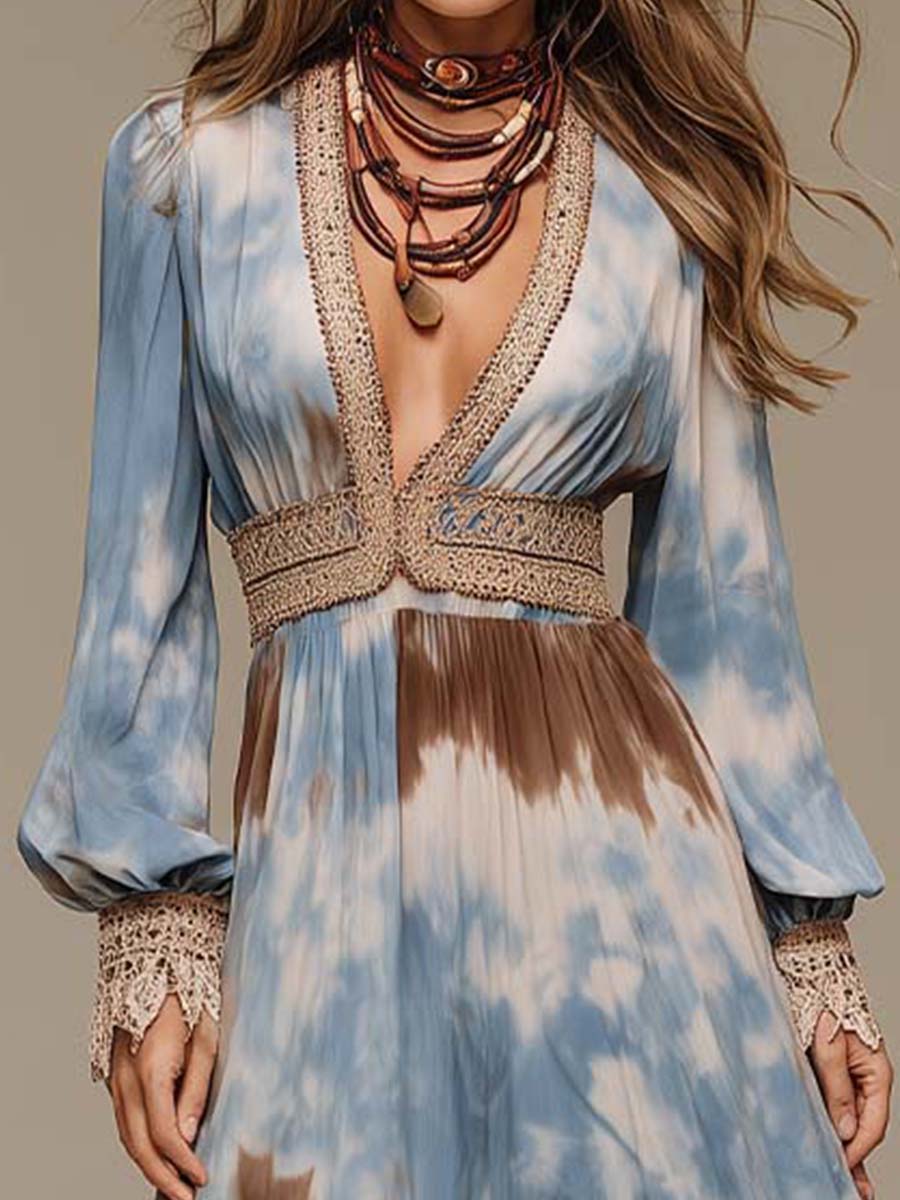 Bohemian Tie-dye Print Crochet Maxi Dress