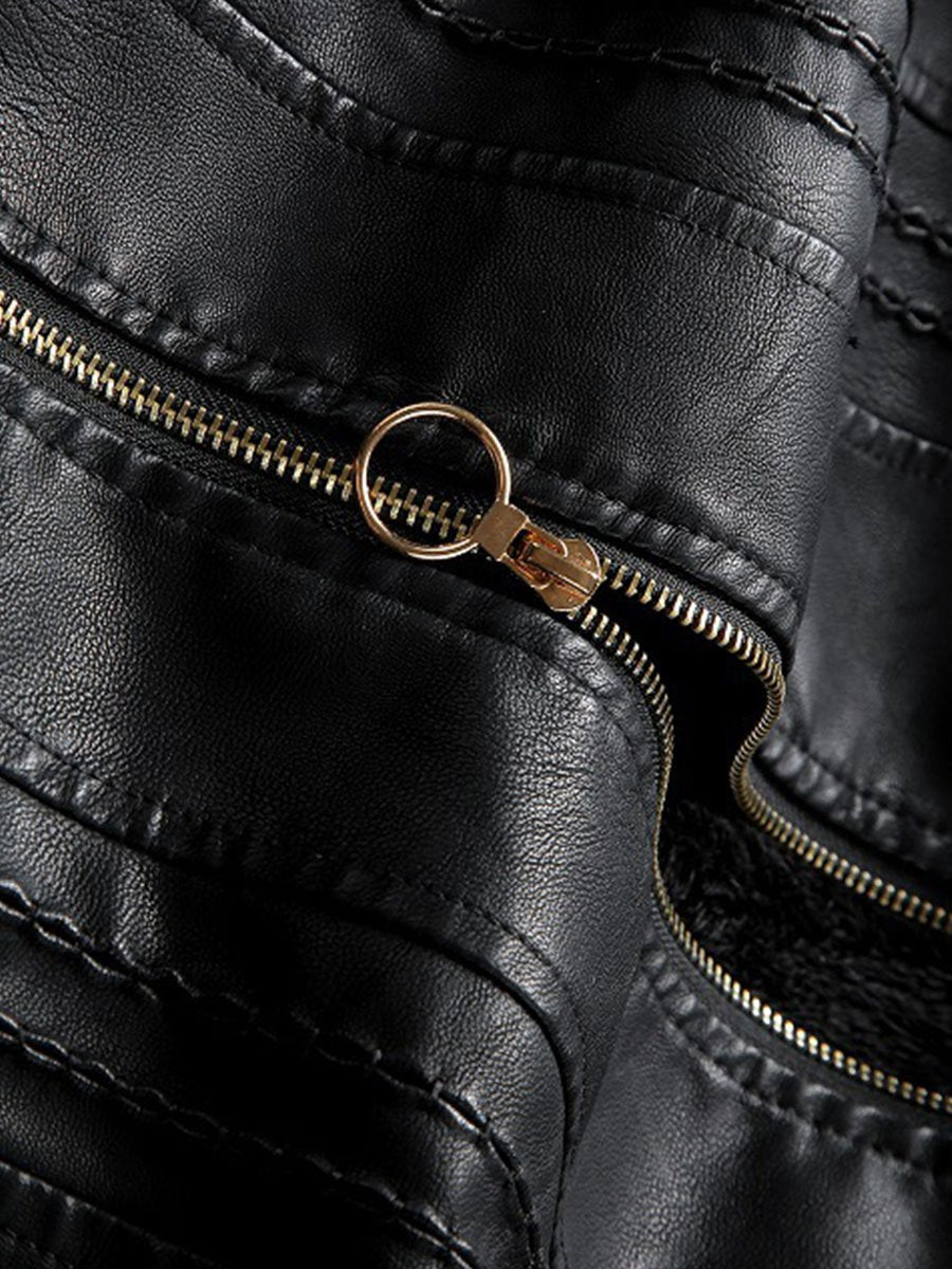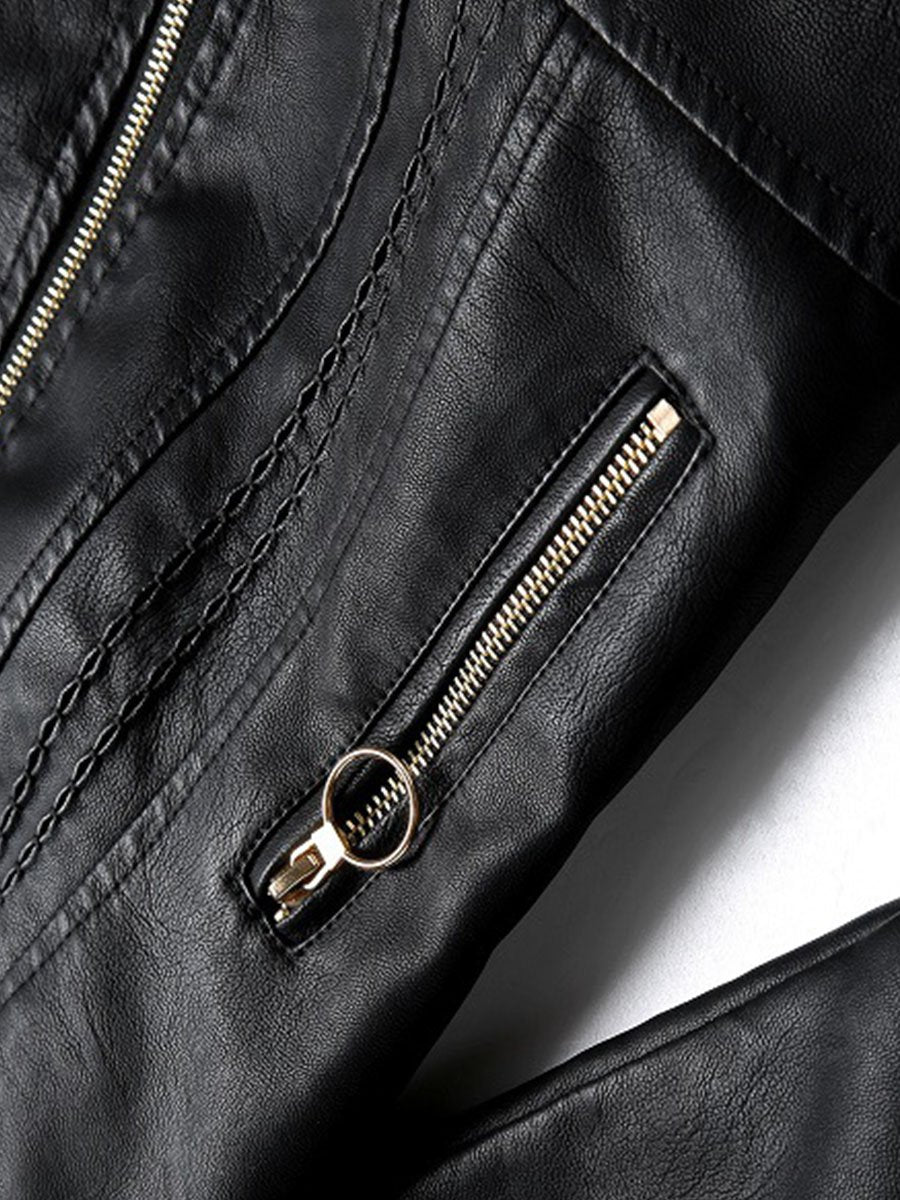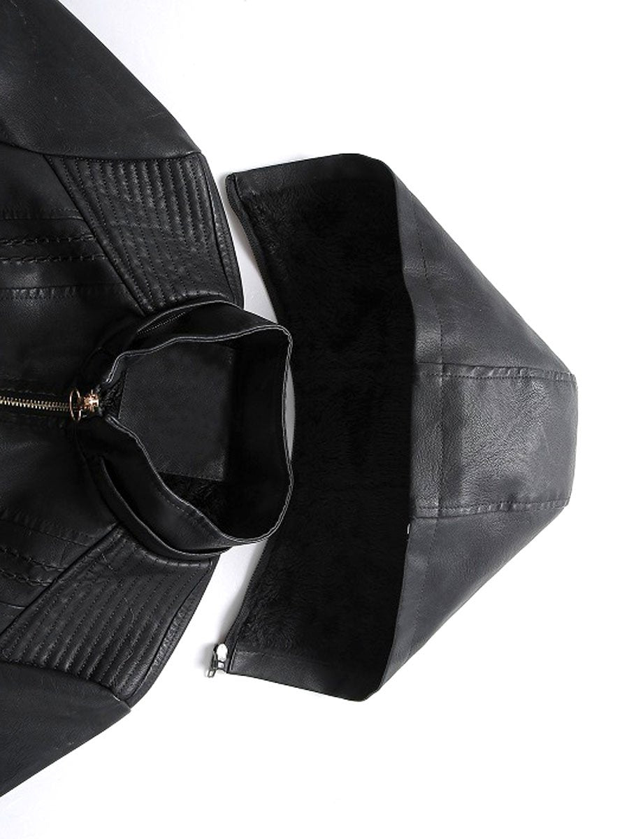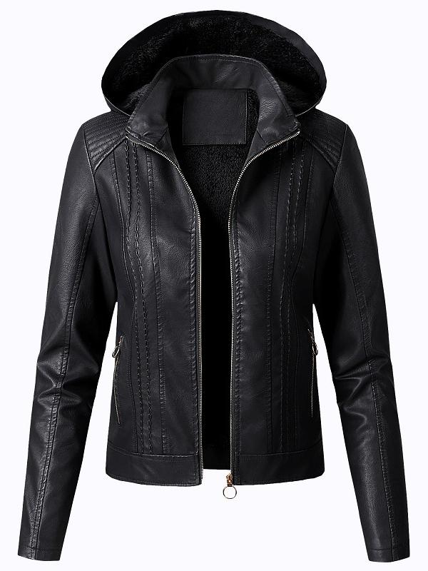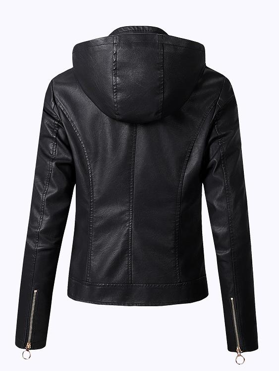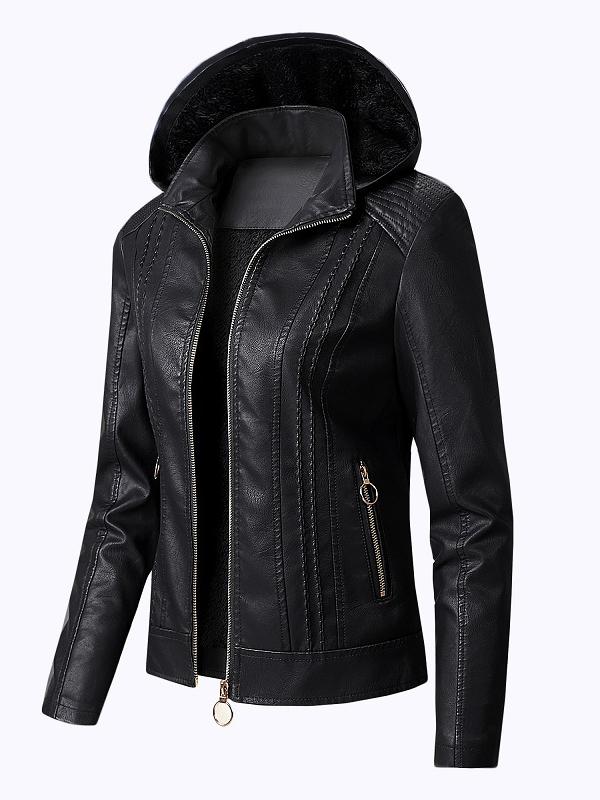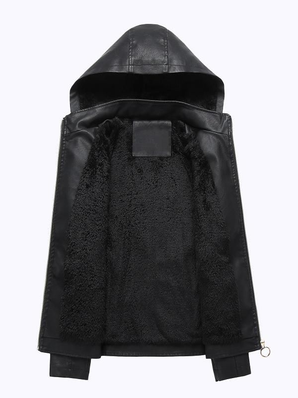 This jacket is made from high-quality leather, with a fleece-lined interior that provides extra warmth and comfort. The detachable hooded design enhances both functionality and style. The zipper closure allows for easy on and off.
