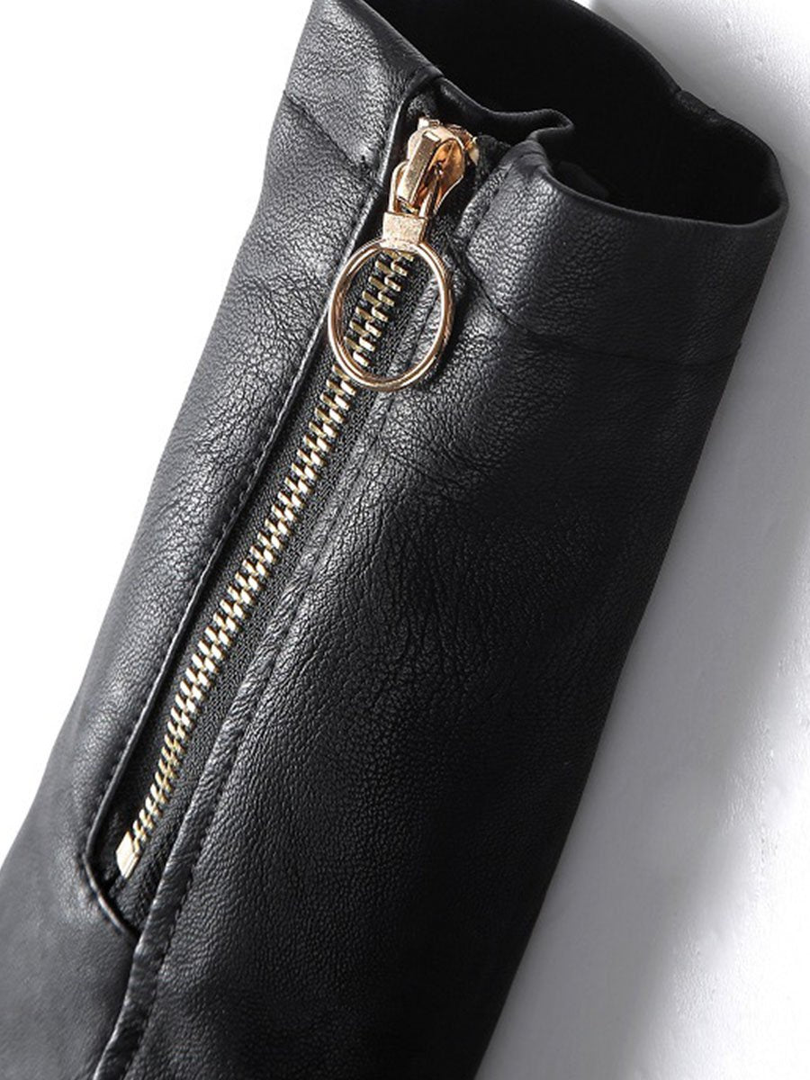Chic Detachable Hood Lamb Lined Zipper-up Sheepskin Jacket