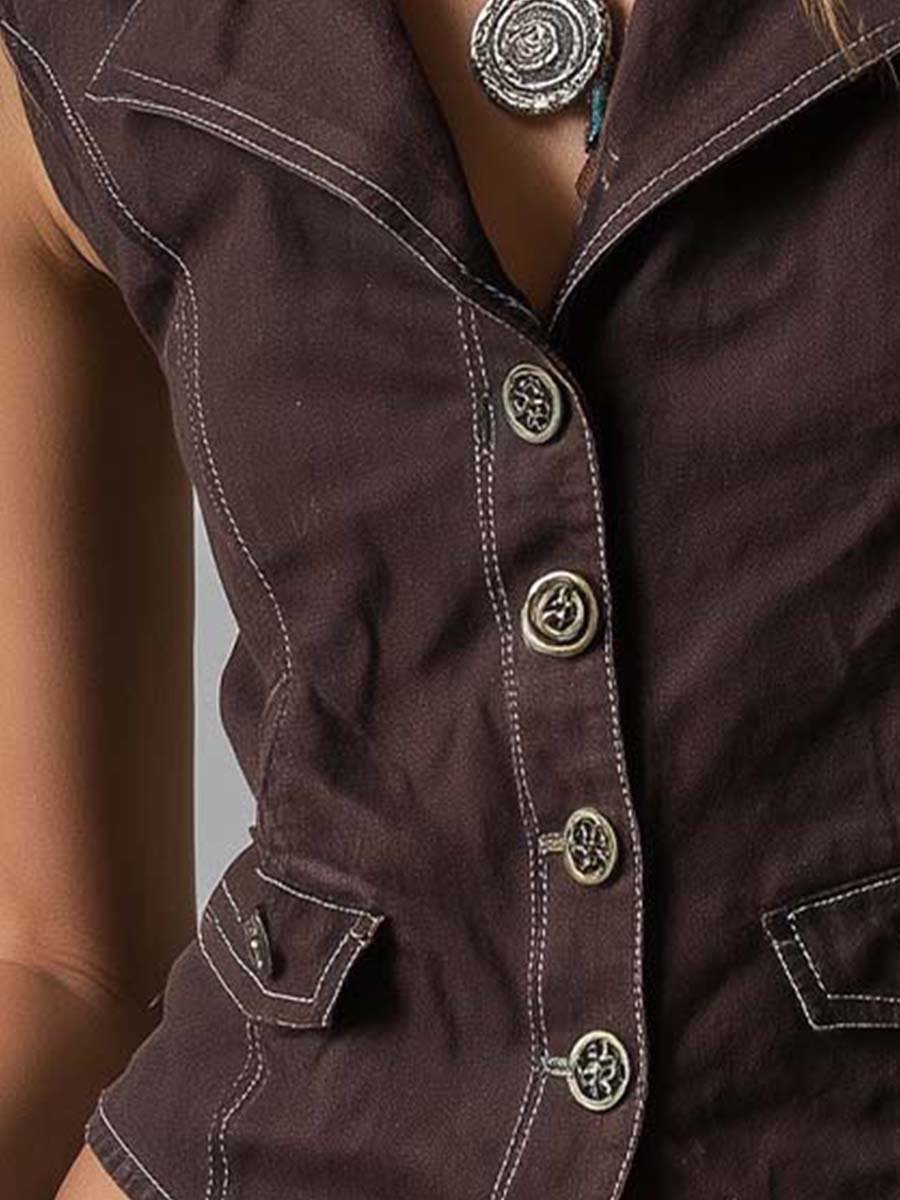 Chocolate Contrast-Stitch Button Vest Top