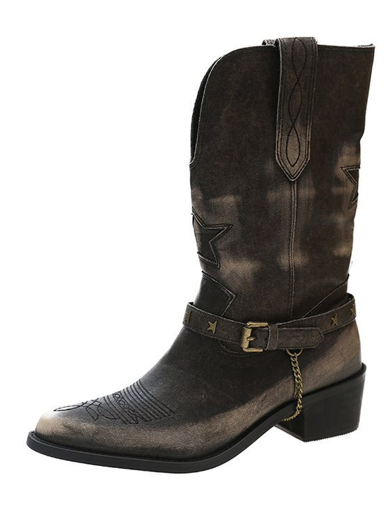 Color-brushed Western Cowboy Boots Pointed Toe Thick Heel Short Knight Boots