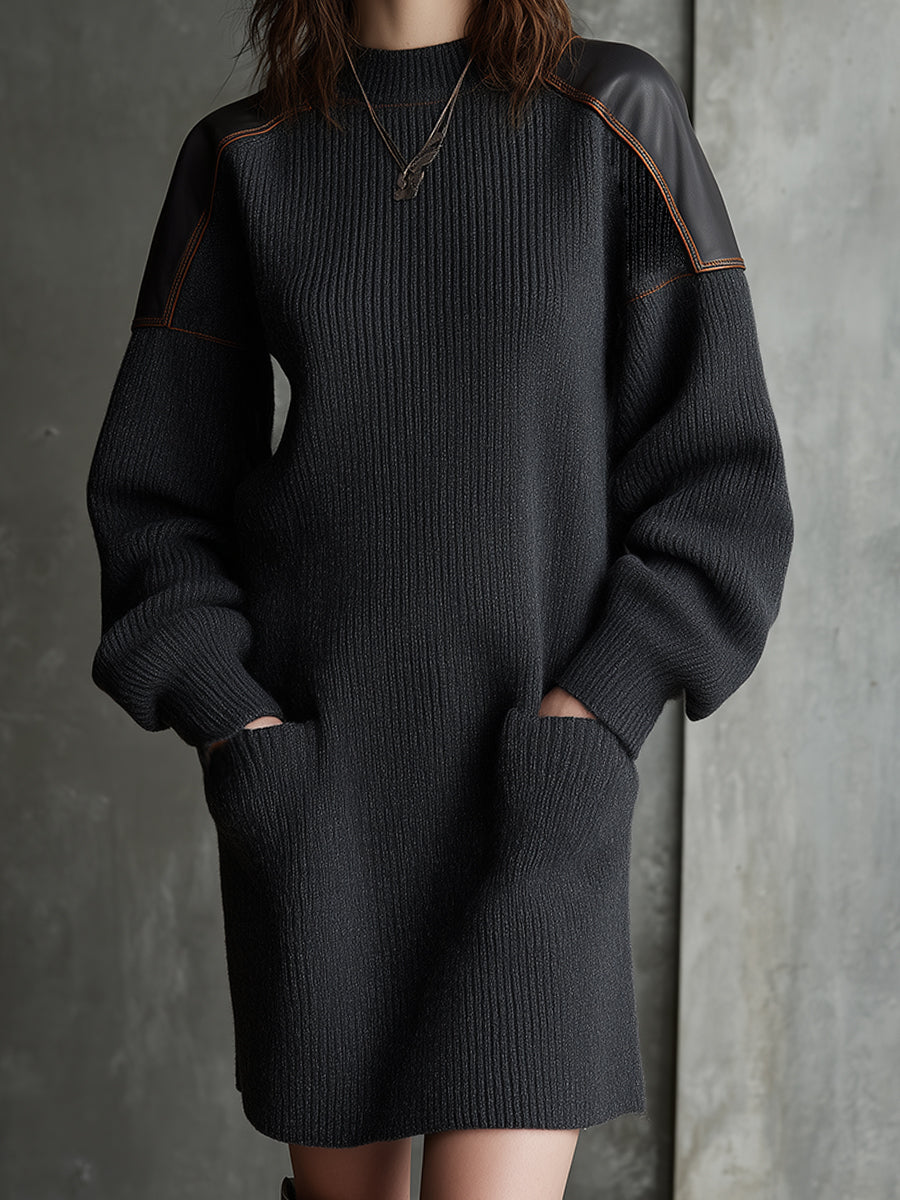 Eclipse Rider Knit Mini Dress With Leather Shoulder Panels