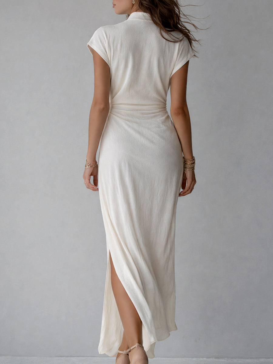 Overall, this maxi dress is a versatile addition to any wardrobe, providing a blend of comfort and style. With its refined features and adaptable nature, it's an ideal choice for those looking to exude effortless elegance.