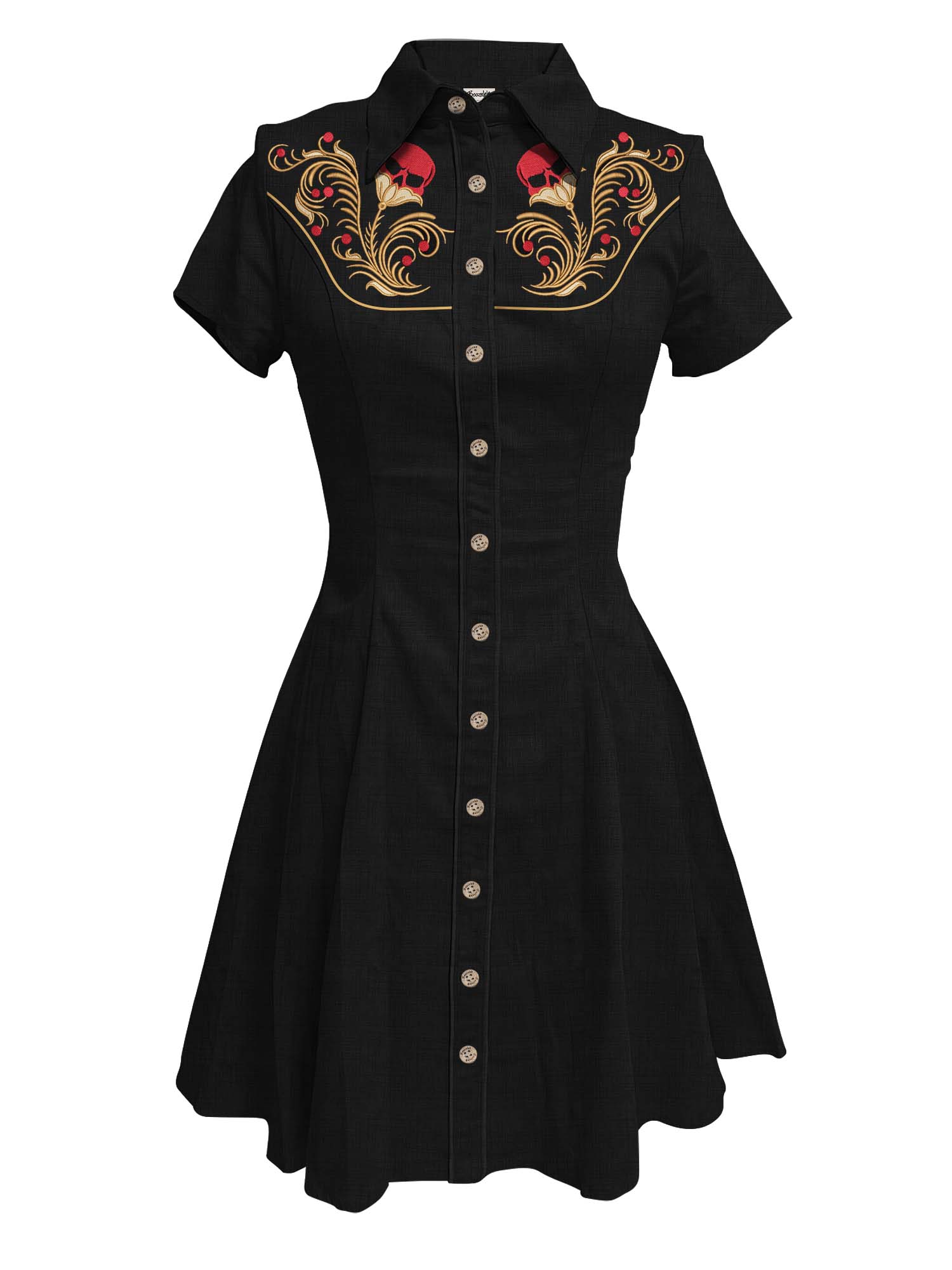 [Embroidery]Skull Flower - 100% Cotton Dress