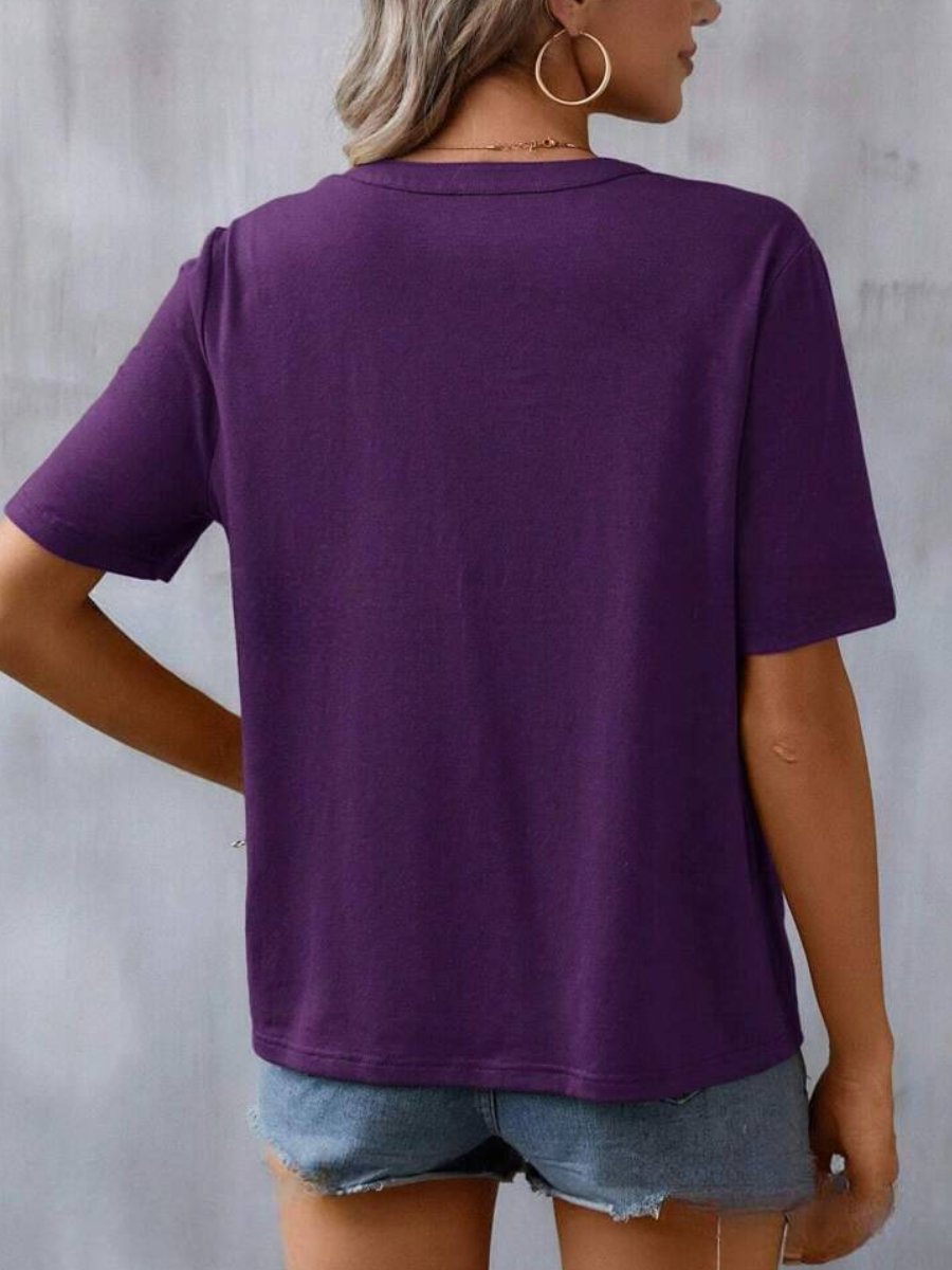 The garment features ethnic-style embroidery. The V-neck design highlights the neckline, complementing facial features and enhancing the wearer's charm and allure. Short sleeves make the top suitable for summer wear. This top is versatile and can be paired with various bottoms such as jeans, skirts, etc.