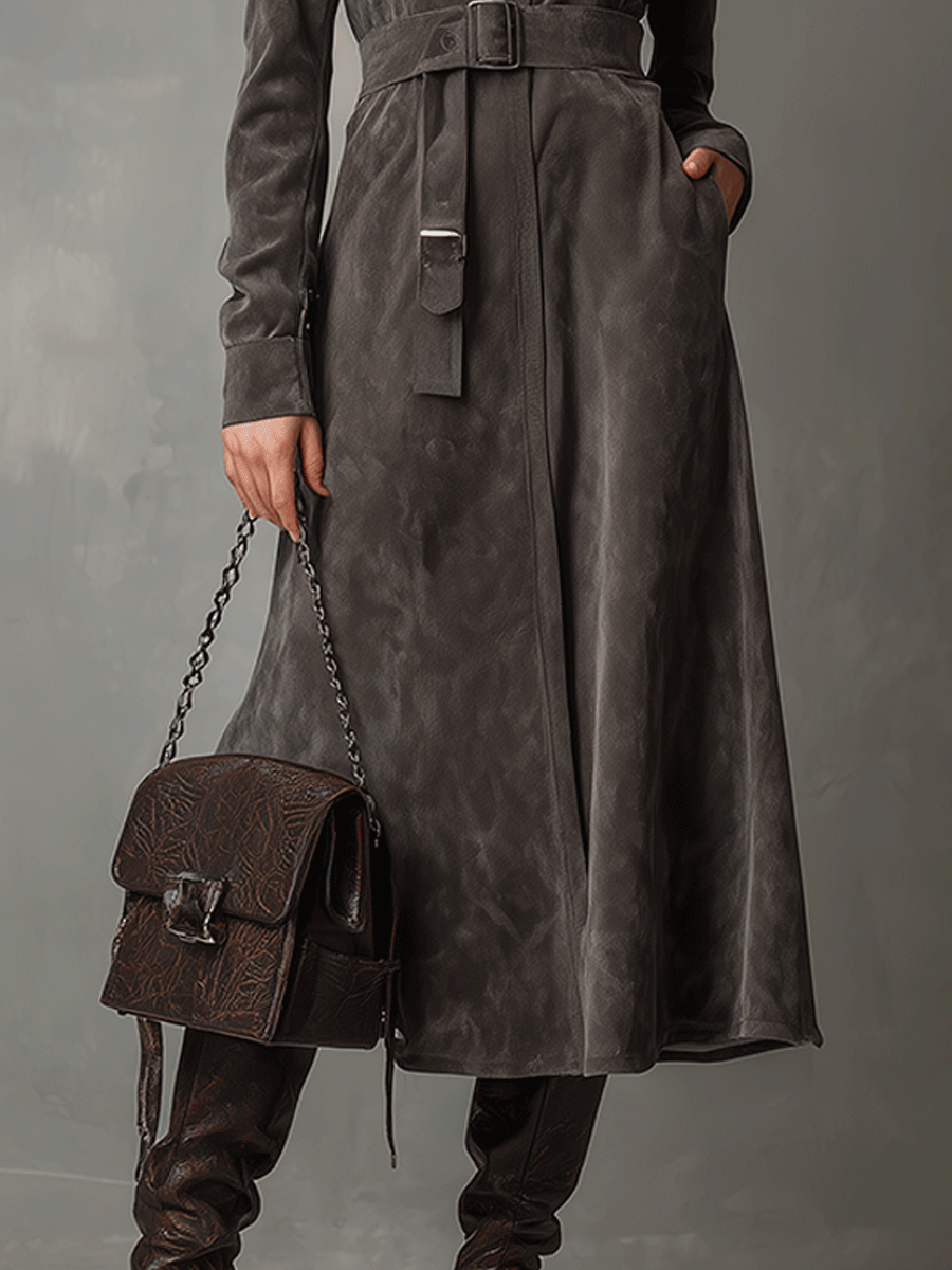 The High Neck Belted Suede Midi Dress is an ideal choice for those seeking a blend of elegance and comfort. Its classic design and luxurious material make it suitable for both formal and casual settings. Add this versatile piece to your wardrobe to effortlessly elevate your style.