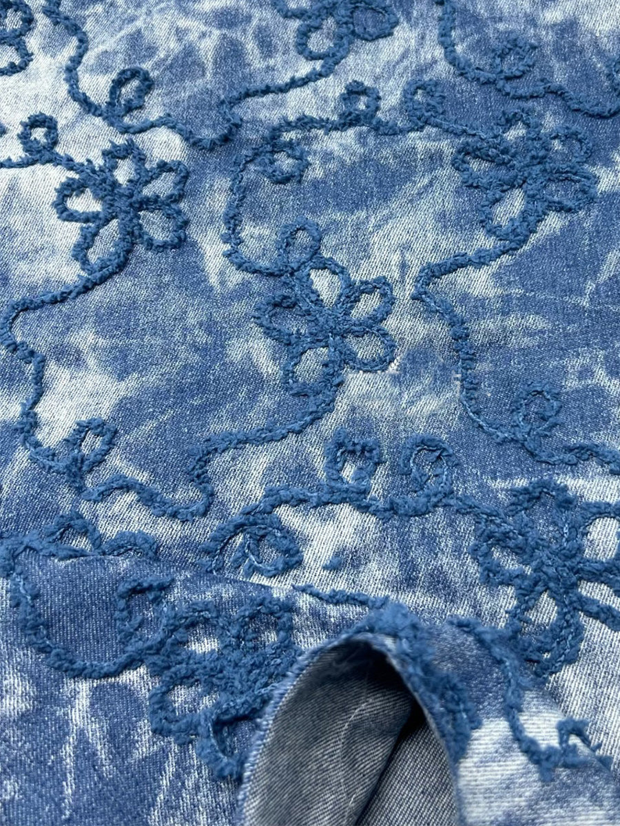 Retro 3D Jacquard Tie-dye Denim Splicing Mini Dress
