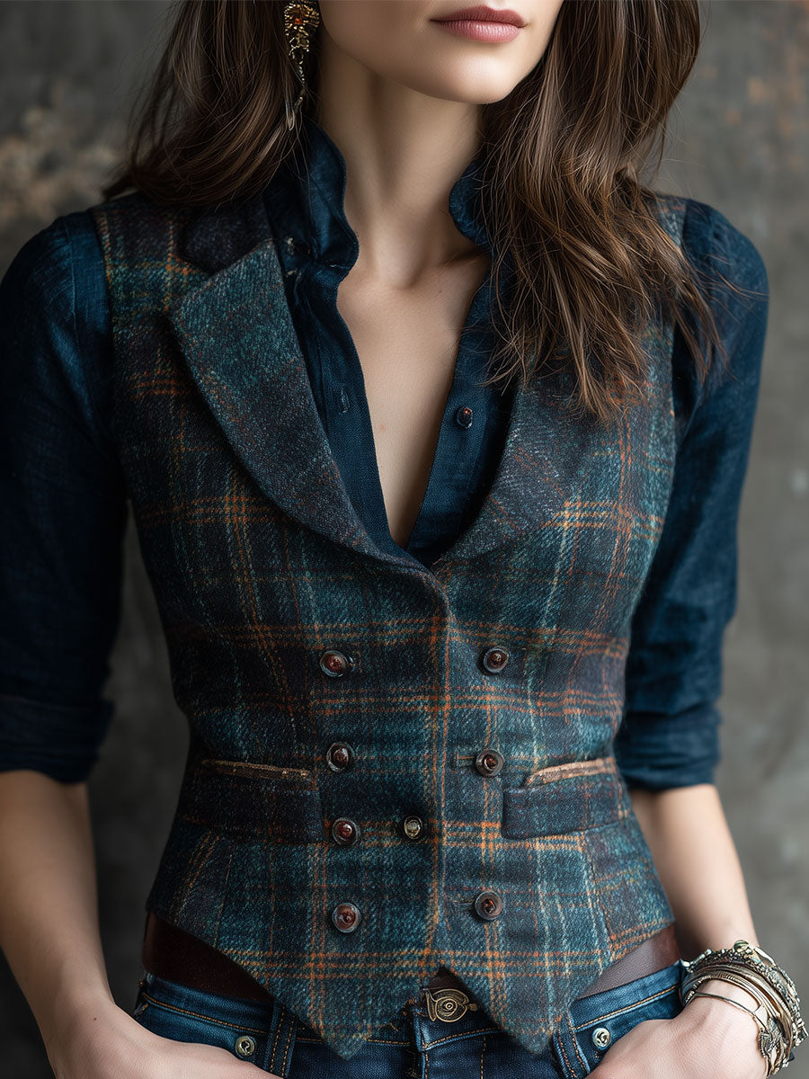 Introducing our Retro Lapel Plaid Wool Vest, a timeless piece that combines both elegance and comfort. Crafted from high-quality wool, this vest features a classic plaid pattern that brings a touch of vintage charm to any wardrobe.