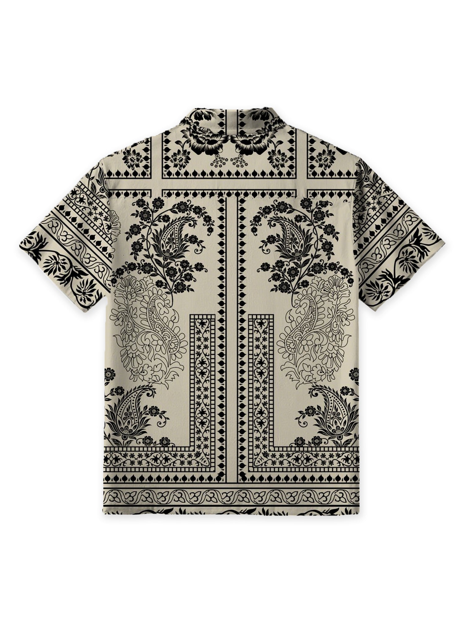 Retro Pattern - 100% Cotton Cuban Collar Shirt