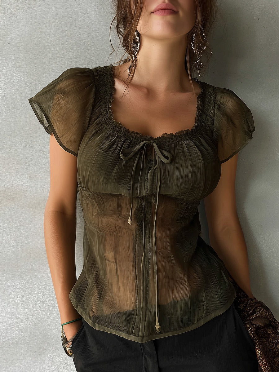 - Layering: Pair under a sleeveless dress or a structured blazer to contrast the soft chiffon with sharper lines.