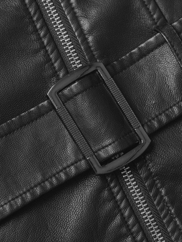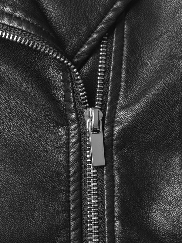 This jacket is made from high-quality leathet. The zipper closure allows for easy on and off. The pockets design is both practical and stylish. The hood provides more styling options. The solid color design is simple and elegant, making it easy to pair with other outfits.