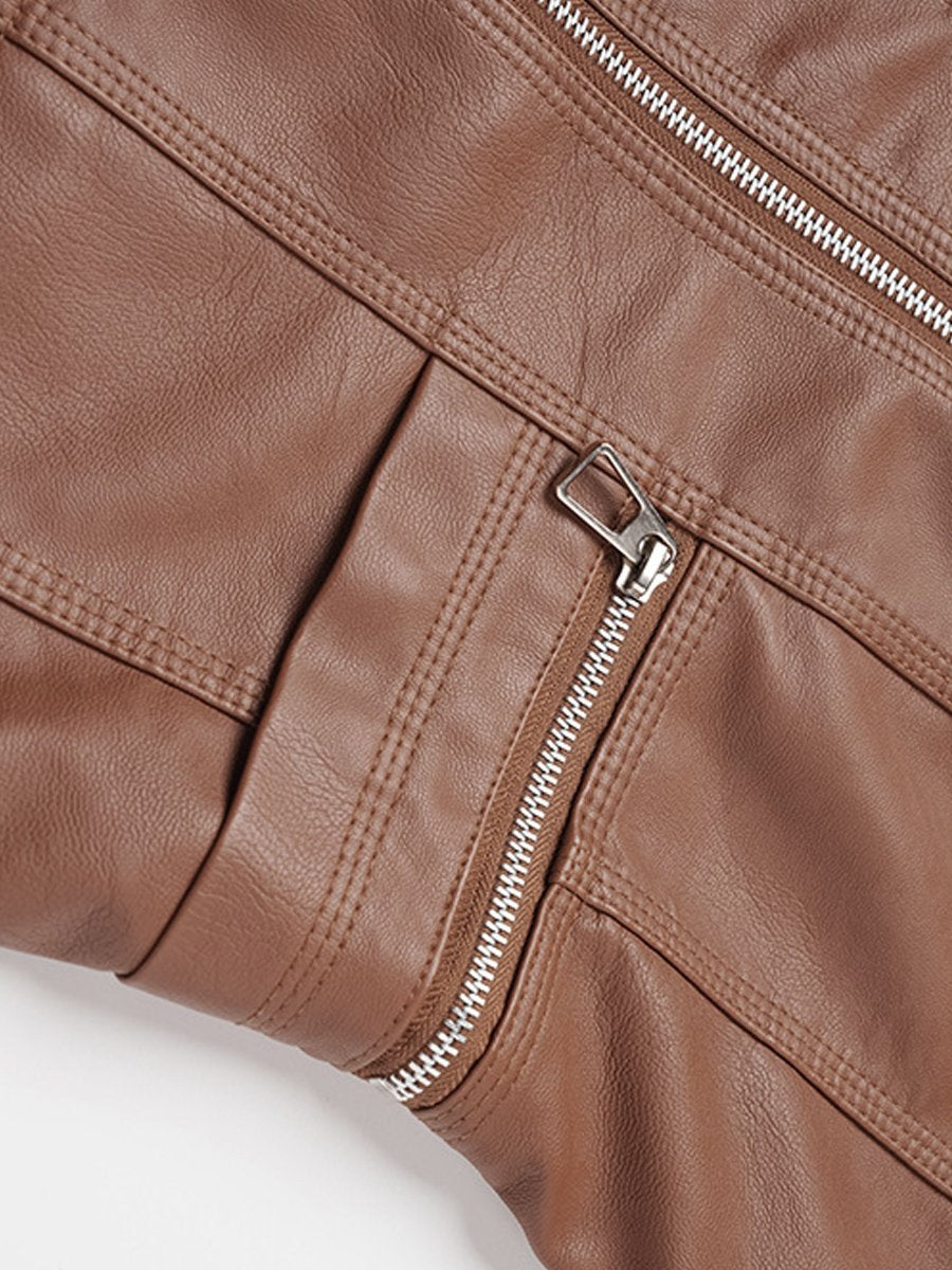 Stylish Slim Fit Stand Collar Biker Leatehr Jacket