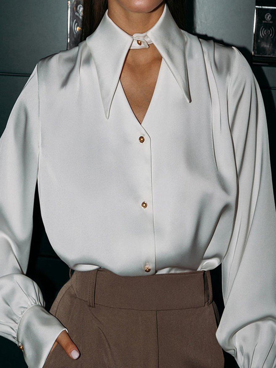Design: Featuring a stylish lapel collar and a sleek silhouette, this long-sleeved shirt exudes elegance and versatility, making it easy to dress up or down for various occasions.