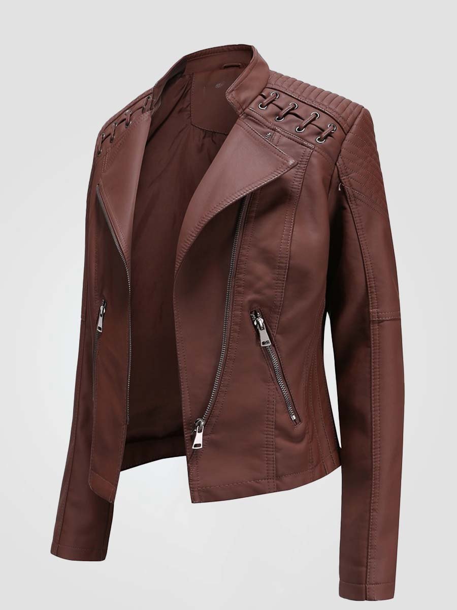 Bold Biker Aesthetic: Complete with classic biker details, like zipper accents and a bold collar, for that unmistakable cool factor.