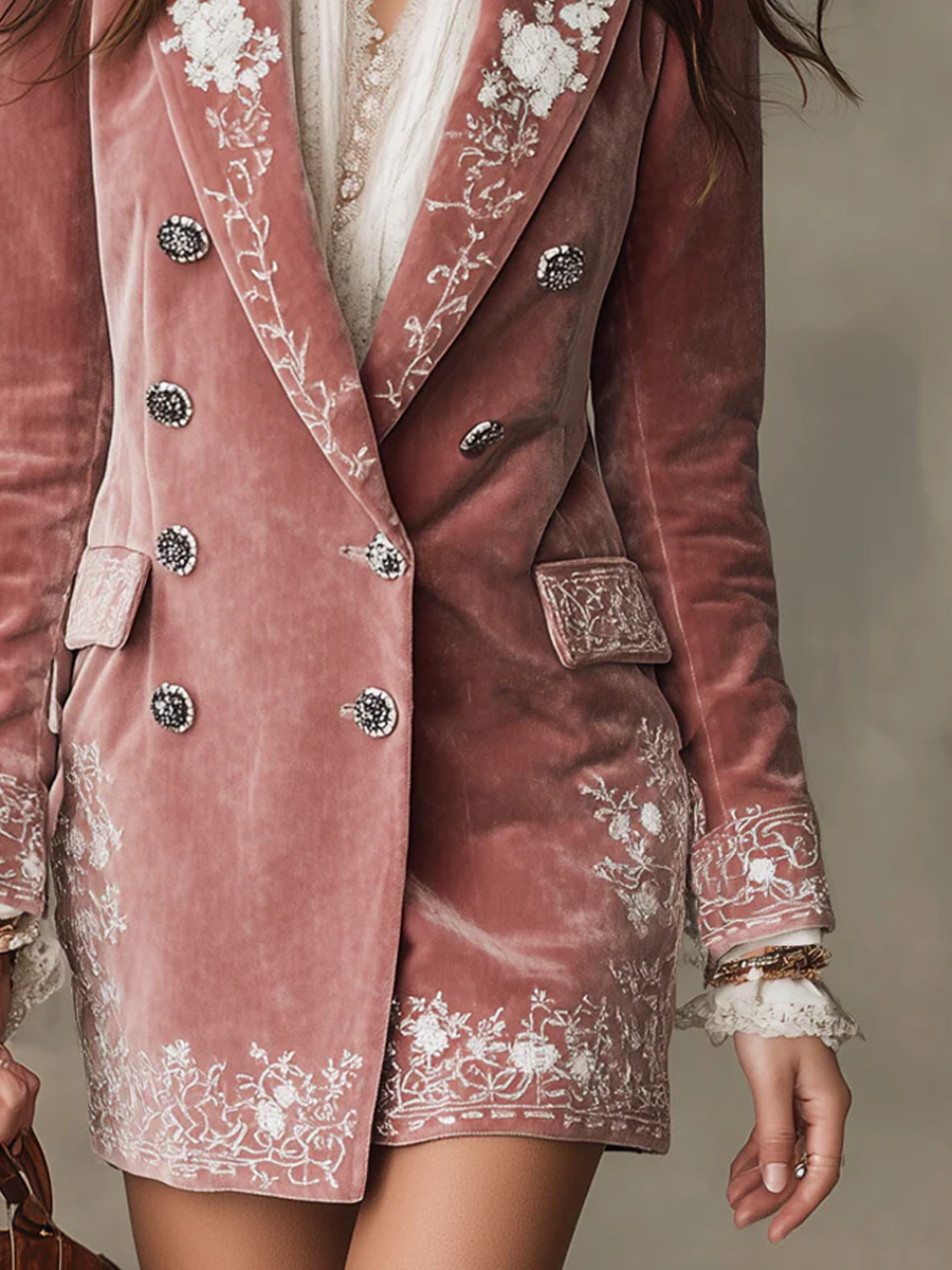 The Vintage Embroidered Polyester Velvet Slim-fit Blazer Mini Dress is a must-have for those who appreciate timeless fashion with a modern twist. Its exquisite details and luxurious fabric make it a versatile and elegant addition to any wardrobe.