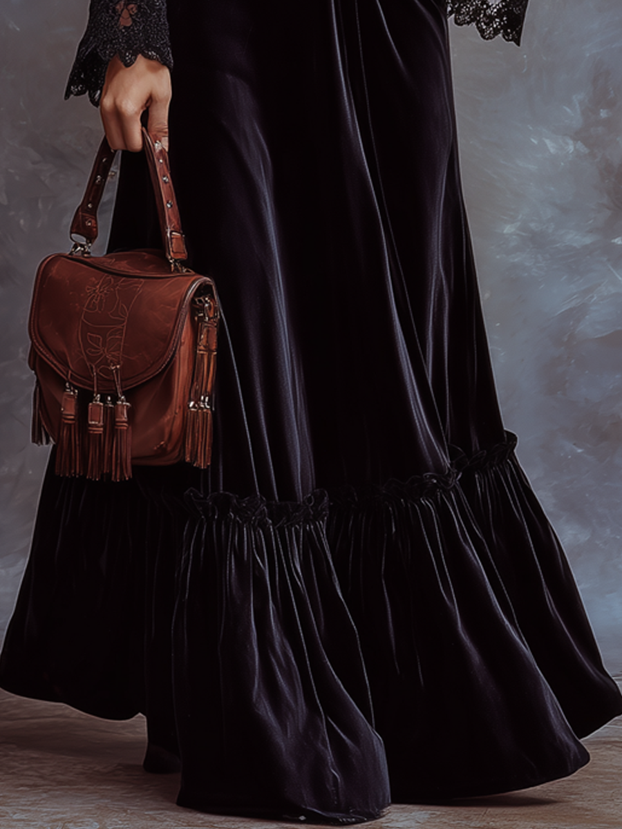 The Vintage Embroidered Trim Lace Cuffs Polyester Velvet Maxi Dress is a timeless addition to your wardrobe, offering both comfort and elegance. Its detailed design and luxurious fabric make it a standout choice for anyone looking to make a statement at their next special occasion.