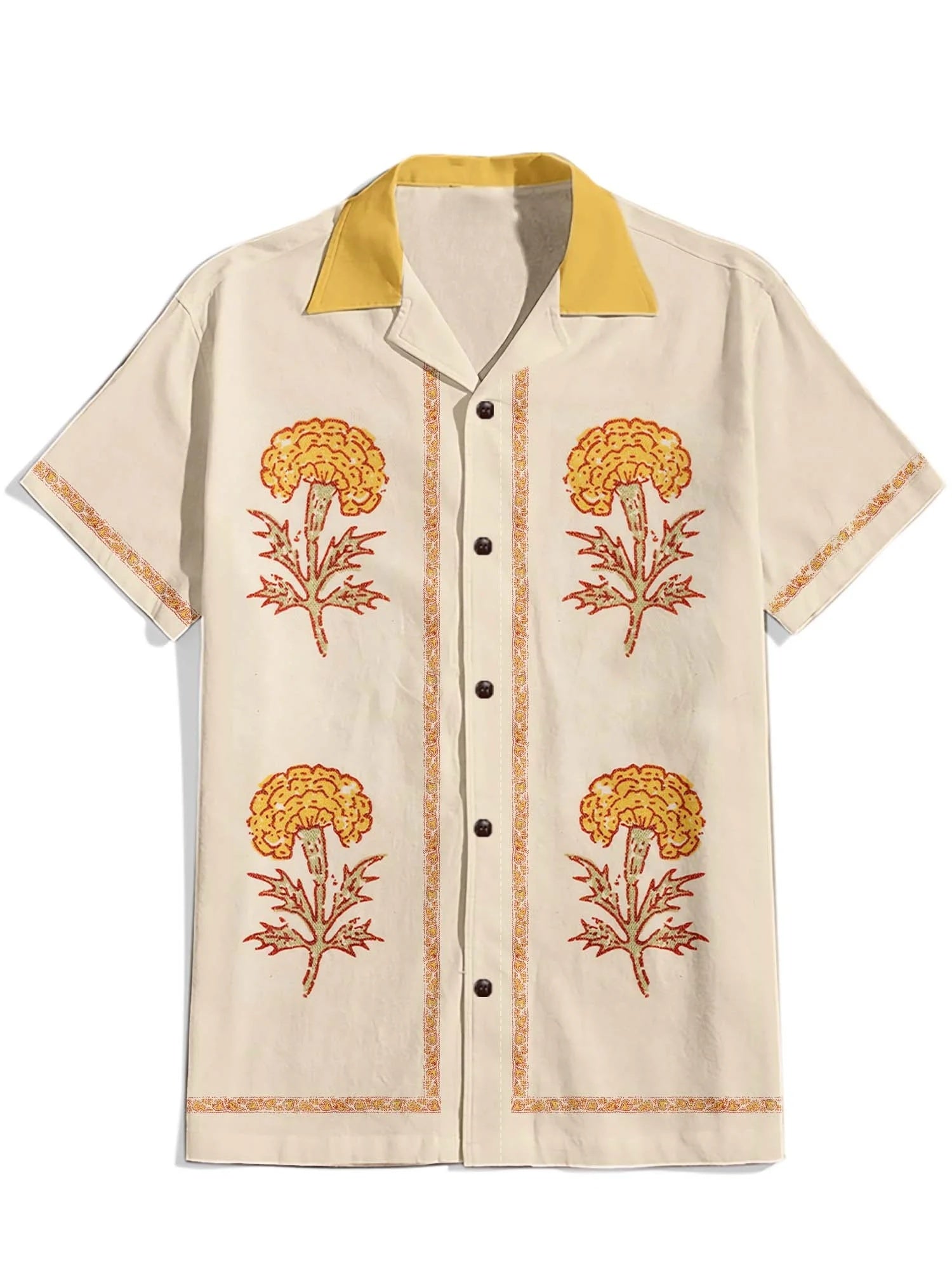 Vintage FLower - 100% Cotton Cuban Collar Shirt