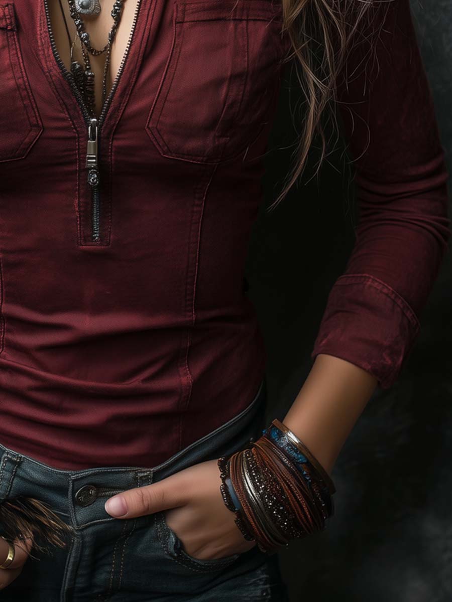 The Vintage Half-zip Distressed Denim Blouse is a must-have for those who appreciate a fusion of classic and modern fashion elements. Its unique features and versatile styling options make it a valuable addition to any fashion-savvy wardrobe.