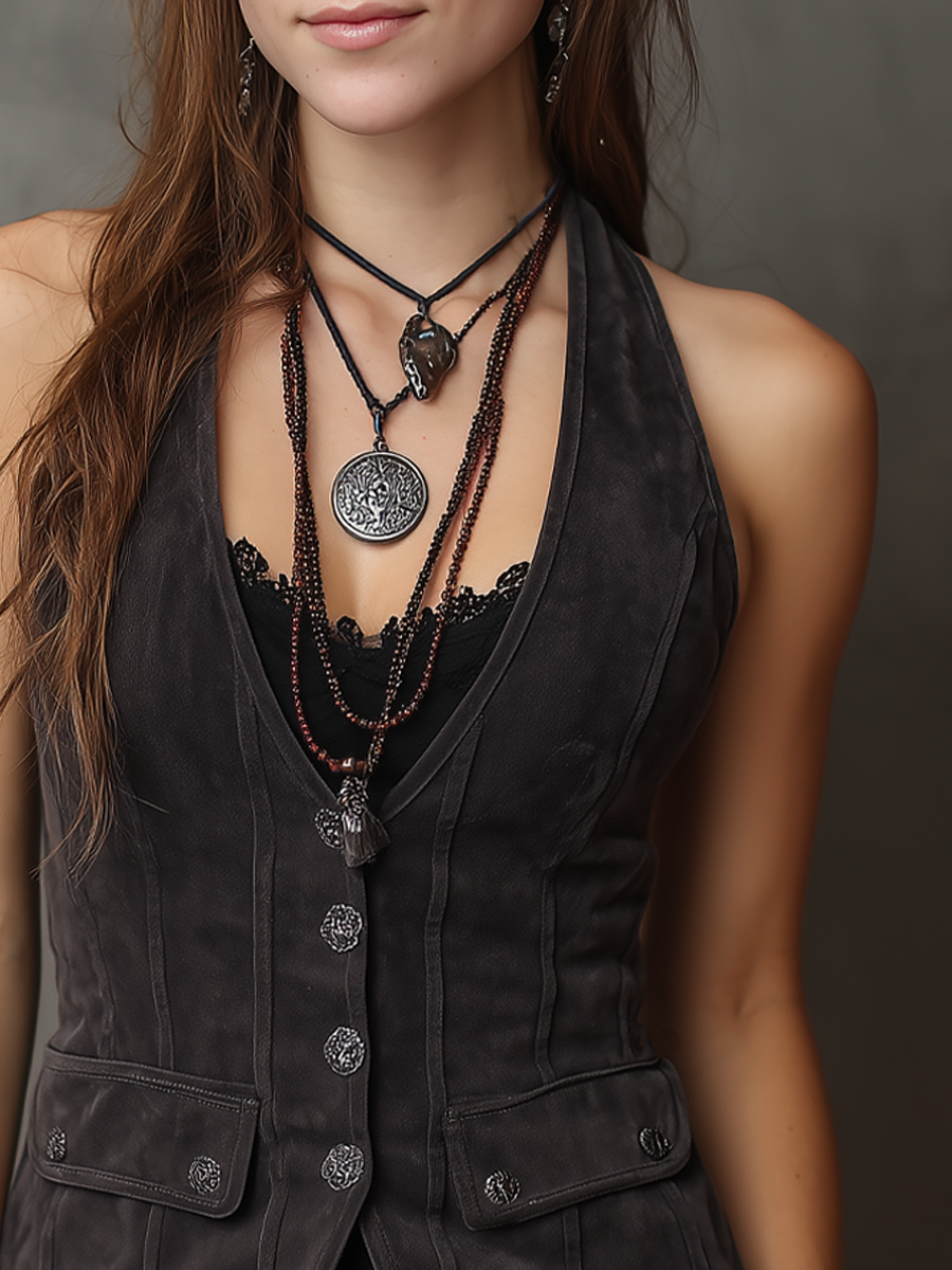 The Vintage Halter Collar Suede Vest is a must-have for those looking to add a touch of retro elegance to their wardrobe. Its versatile design and luxurious material make it suitable for various style explorations, making you stand out with timeless charm.