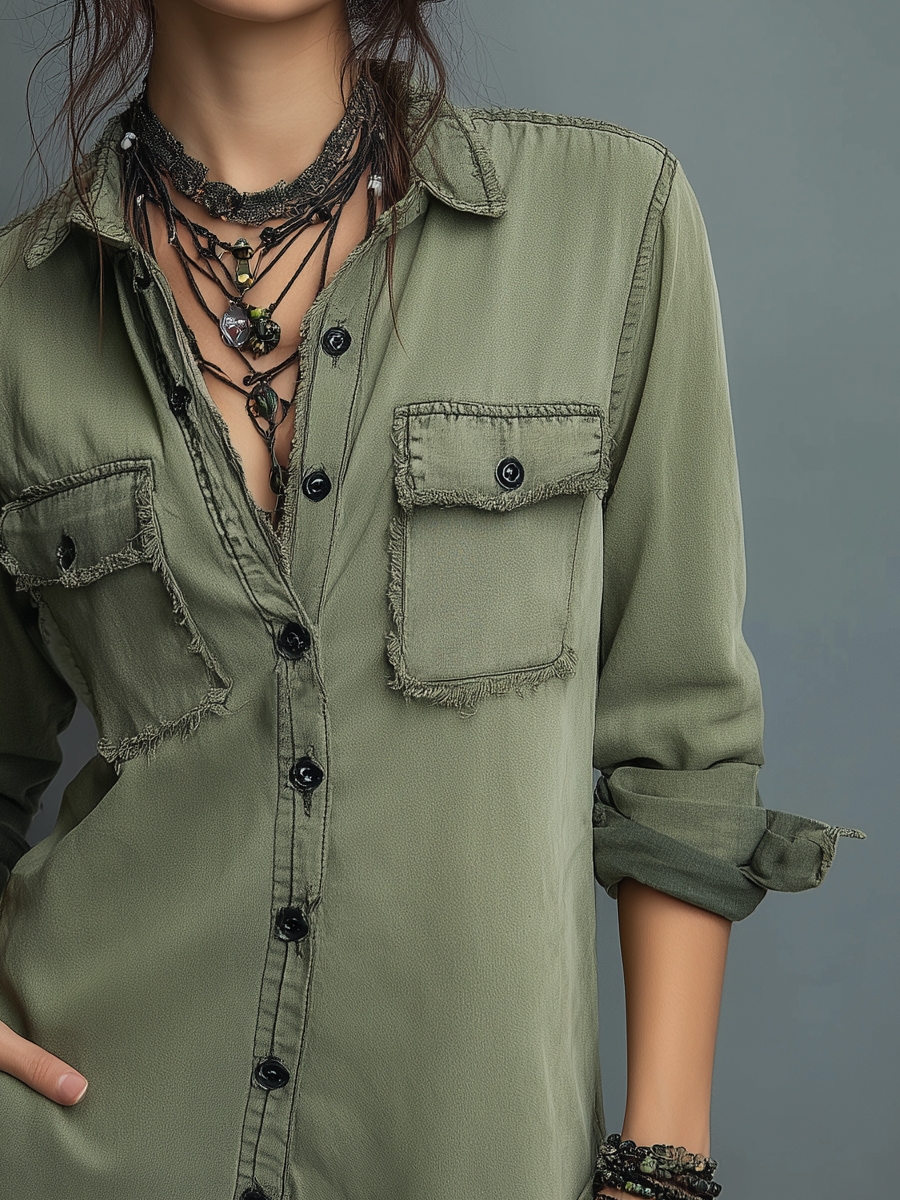 The Vintage Raw Edge Long Sleeve Washed Blouse is an essential wardrobe piece for those who appreciate both comfort and style. Its vintage-inspired design and comfortable fit make it a versatile addition to any closet.