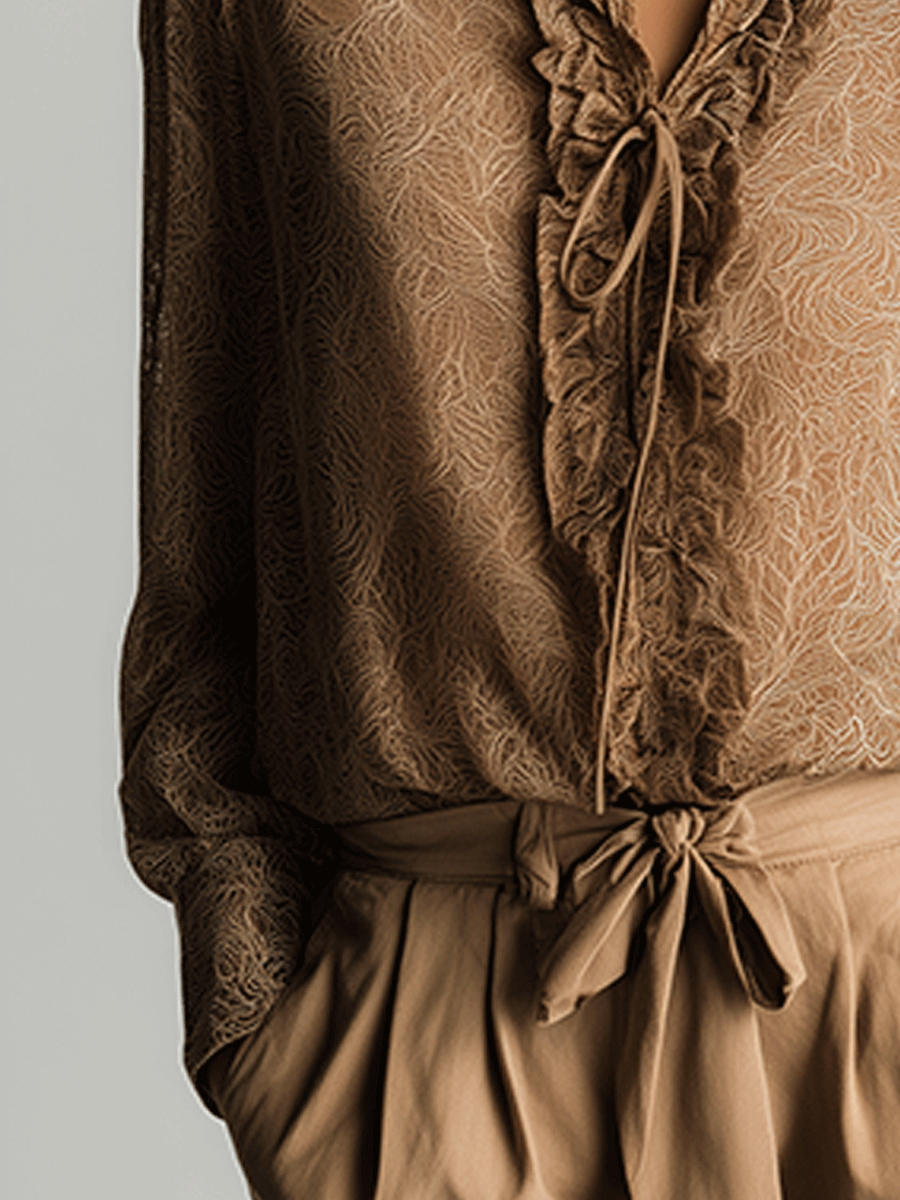 The Vintage Ruffled Tie Floral Print Chiffon Shirt is more than just a piece of clothing; it is a statement of grace and style. Its versatile design ensures that it can be worn for both casual and formal occasions, making it a valuable addition to any wardrobe.
