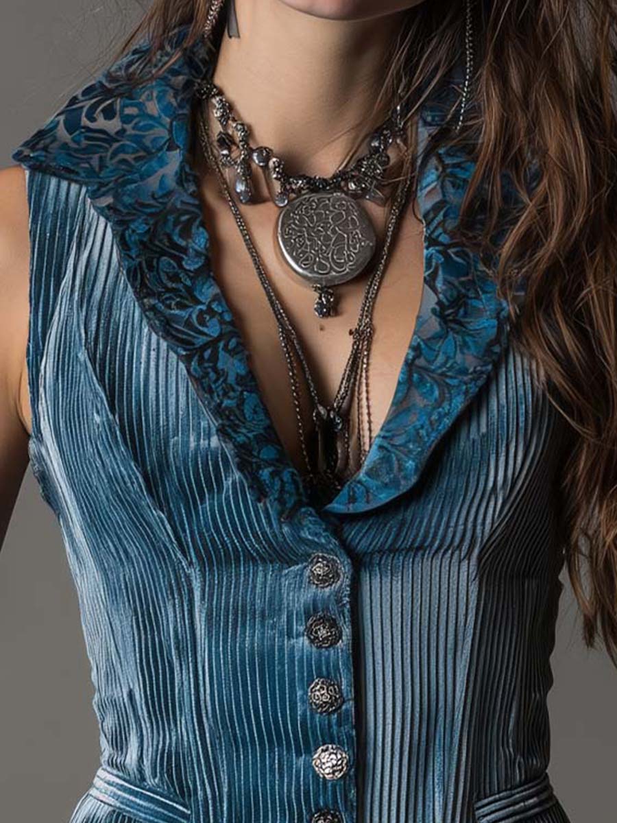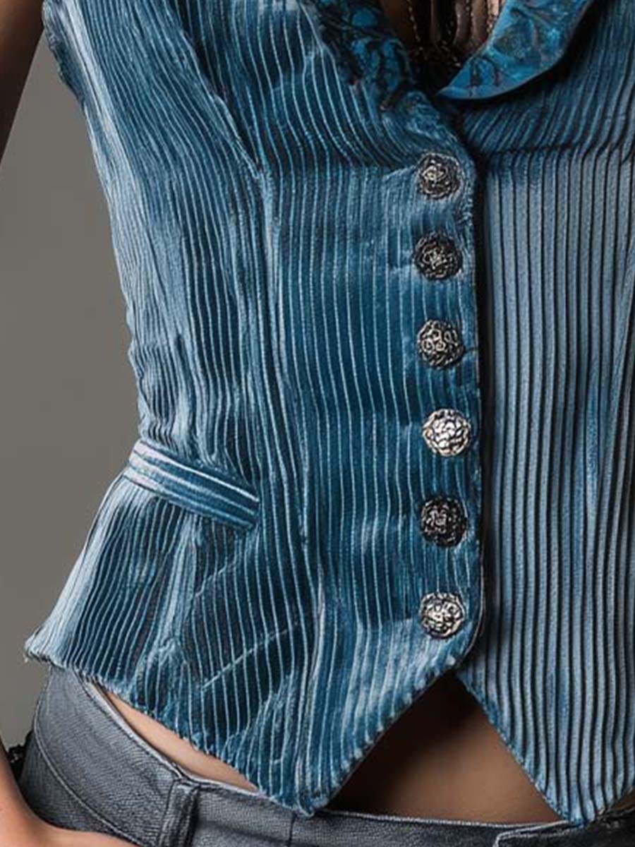 Vintage Striped Velvet Satin Vintage Collar Slim Fit Vest
