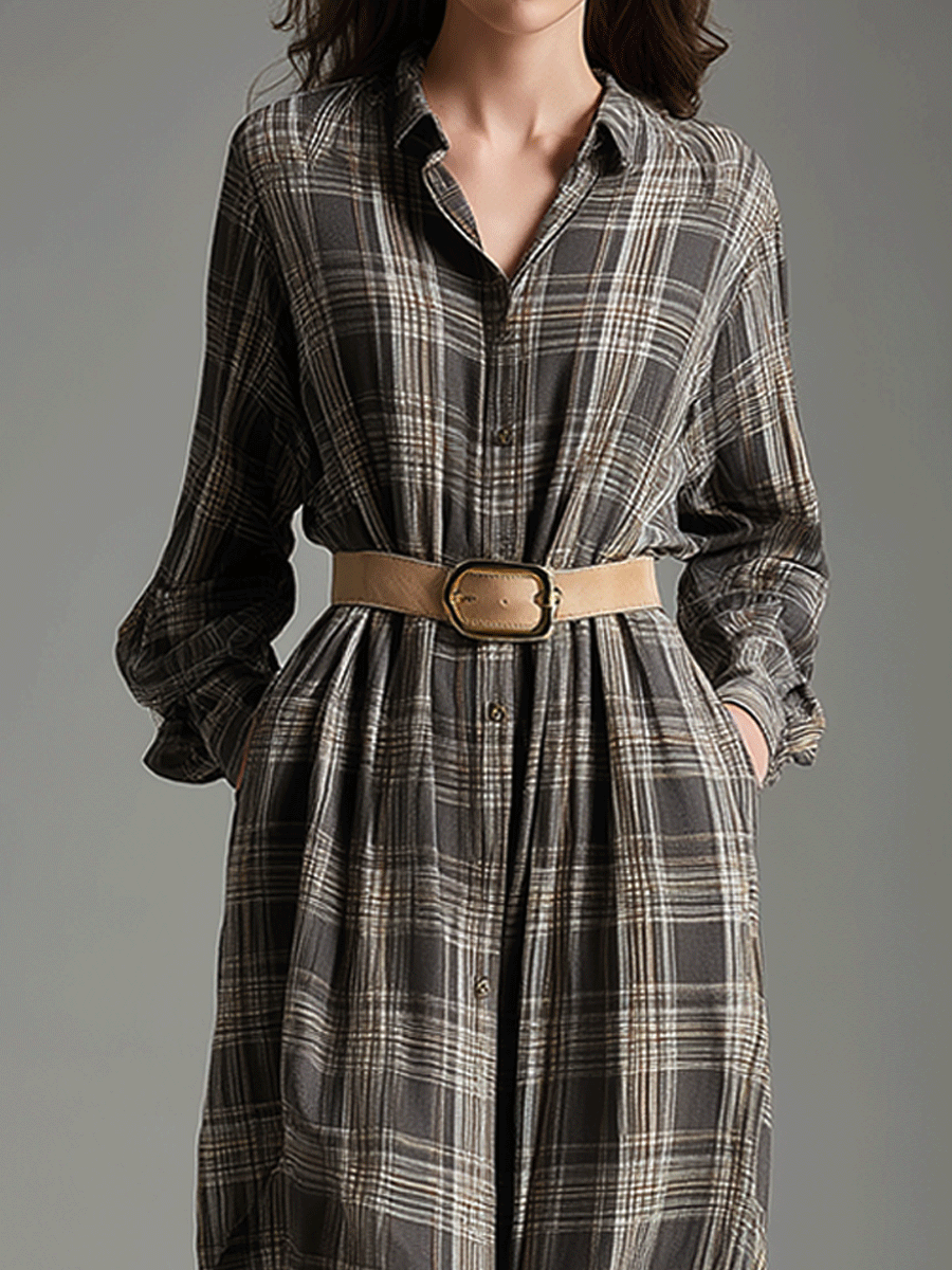 The Vintage-Style Gray Plaid Midi Dress is a classic piece that combines timeless elegance with modern versatility. Crafted from high-quality fabric, this dress features a sophisticated gray plaid pattern that evokes a sense of nostalgia while remaining chic. Its midi length and tailored fit create a flattering silhouette suitable for various occasions.