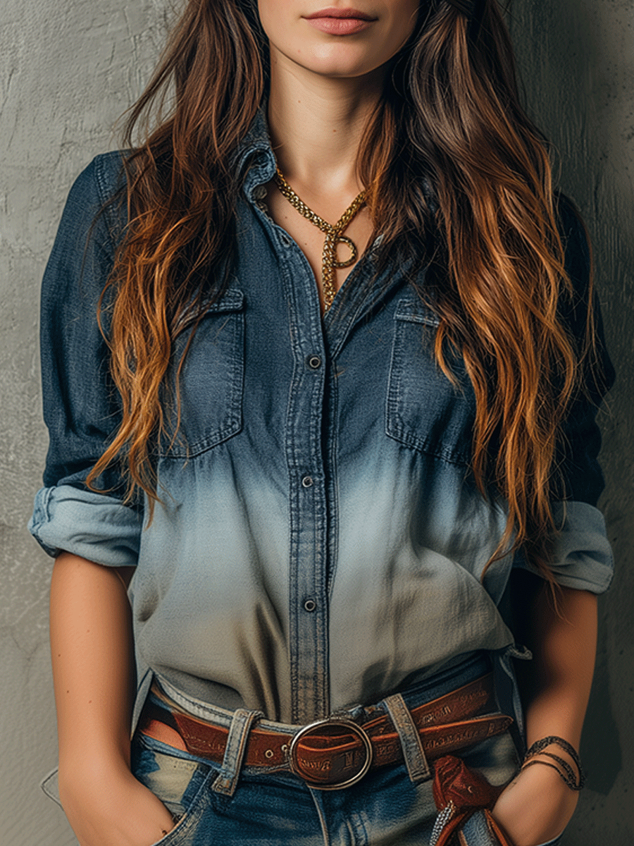 Step into a realm where classic charm meets contemporary fashion with our Vintage Western Style Gradient Washed Denim Shirt. This unique piece embodies the essence of vintage western aesthetics while offering a fresh take with its distinctive gradient washed design. Crafted from high-quality denim, this shirt is not only stylish but also promises durability and comfort.