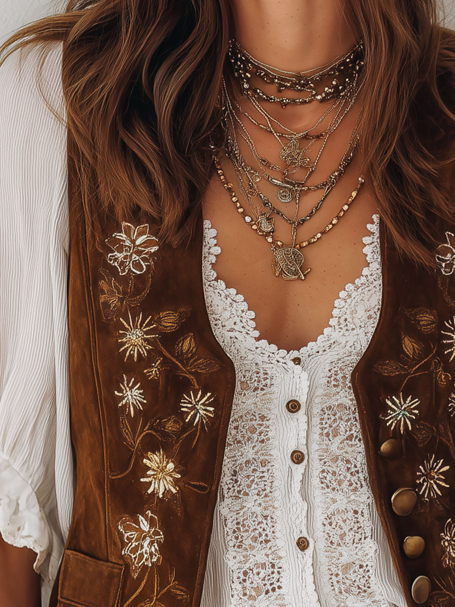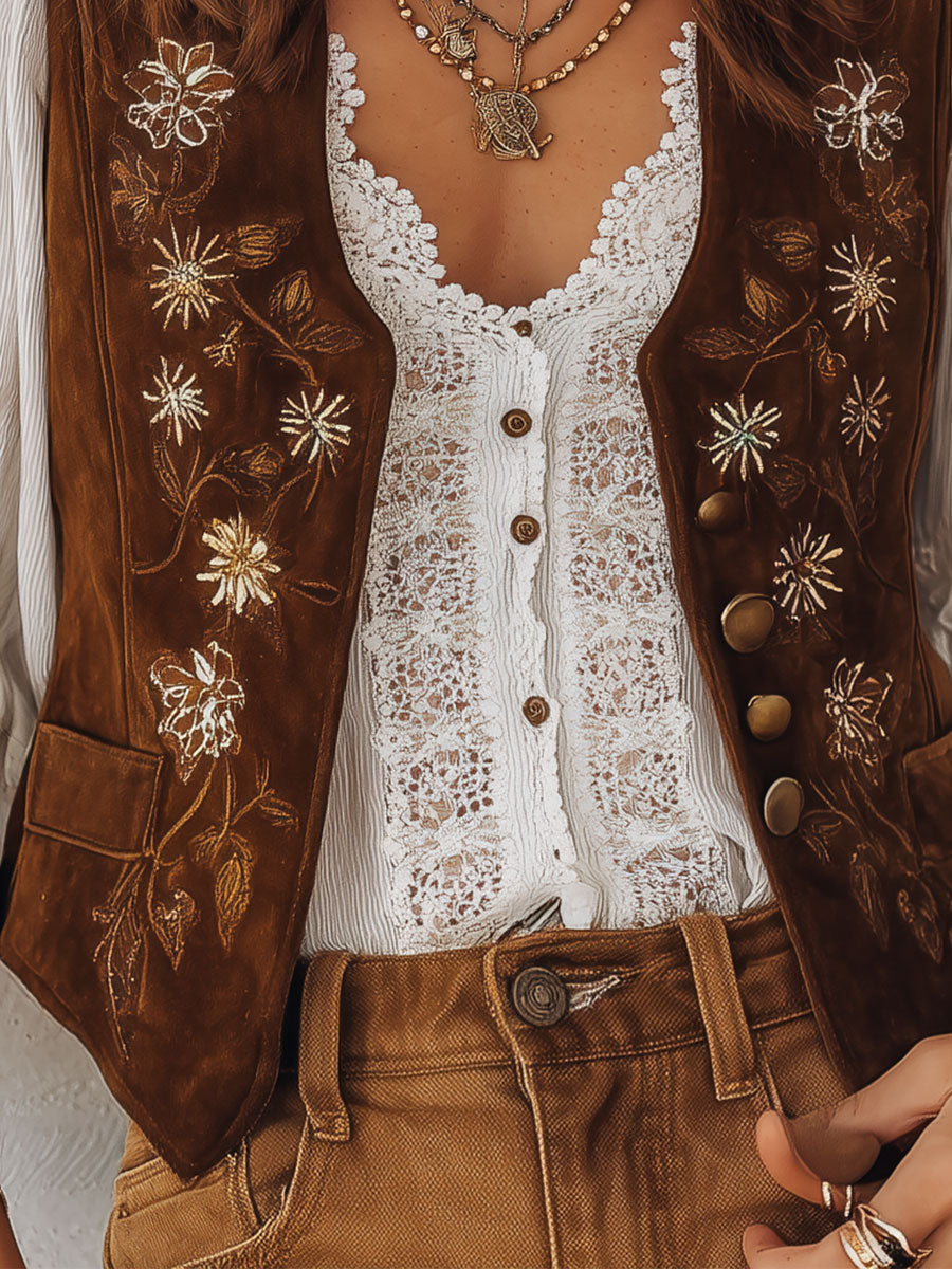 The Vintage Western Suede Embroidered Vest is a timeless piece of fashion that captures the essence of classic Western style. Crafted from high-quality suede, this vest features intricate embroidery that adds a touch of elegance and artistry to your wardrobe. Perfect for adding a vintage flair to any outfit, this vest is a standout choice for those who appreciate detailed craftsmanship.