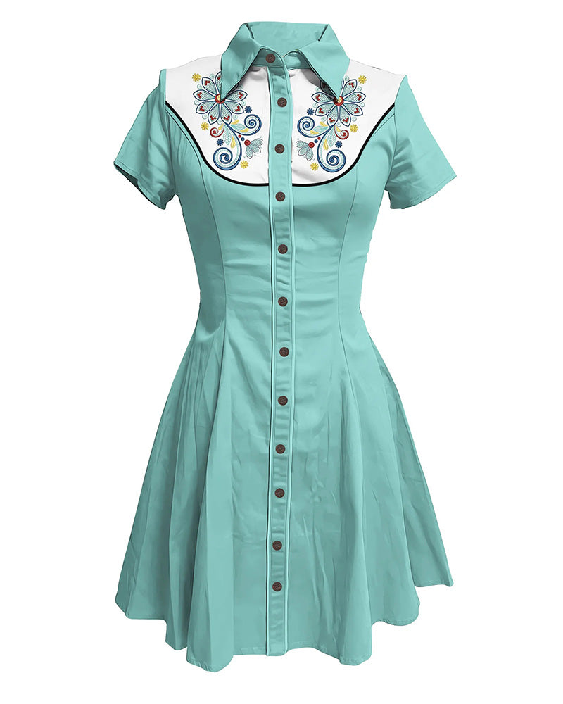 Western Vintage Flower Lapel Shirt Dress