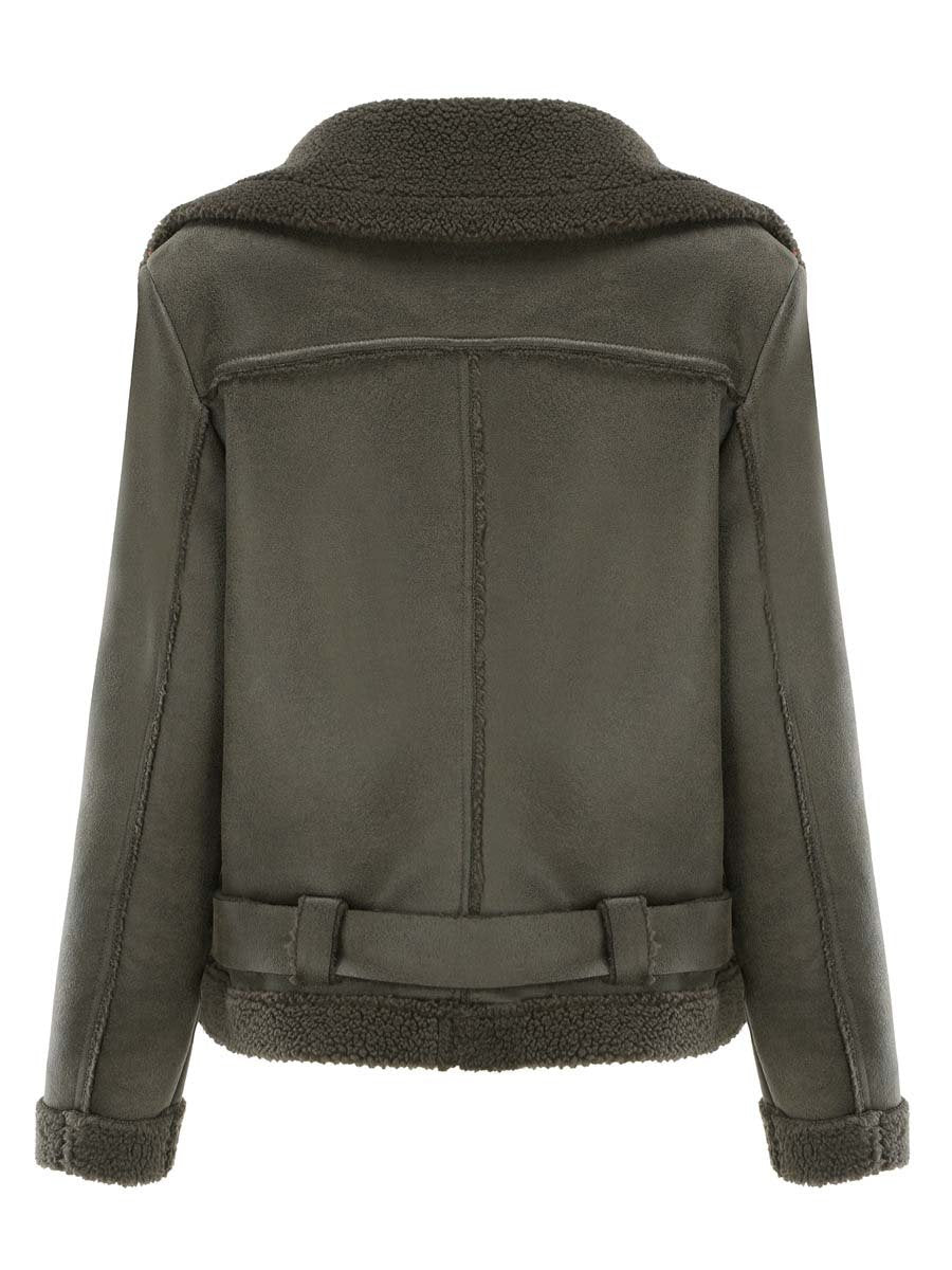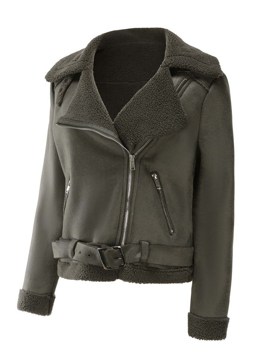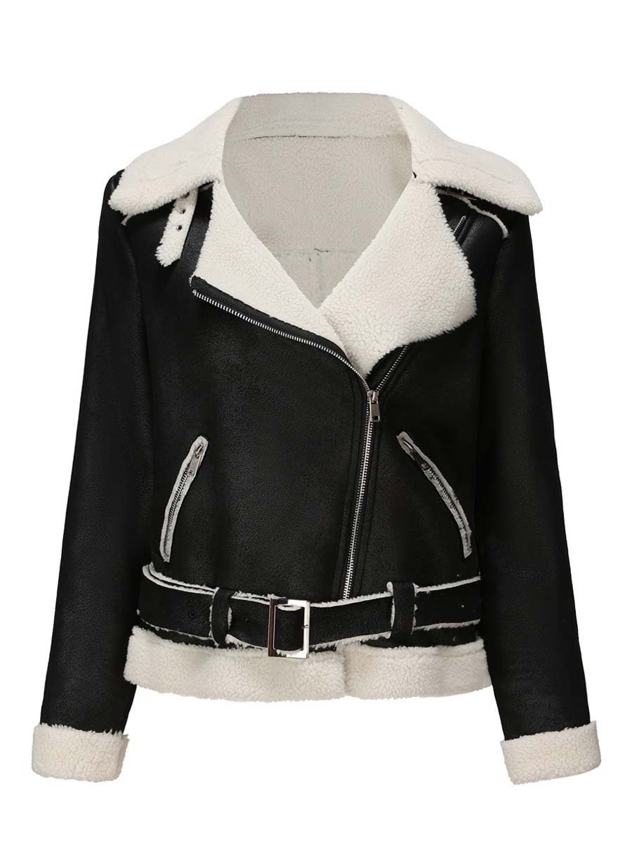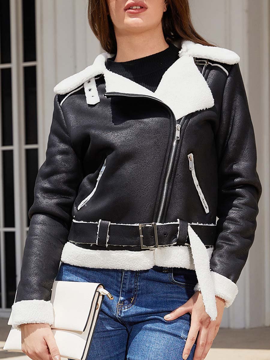The suede jacket is a chic blend of luxury and comfort, featuring a soft suede exterior and cozy sherpa lining. Designed with a waist-defining belt for a flattering fit, this jacket offers warmth and timeless style, perfect for cooler days and casual outings.