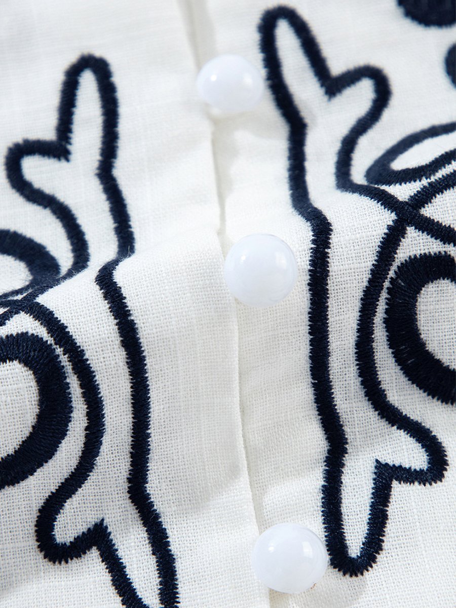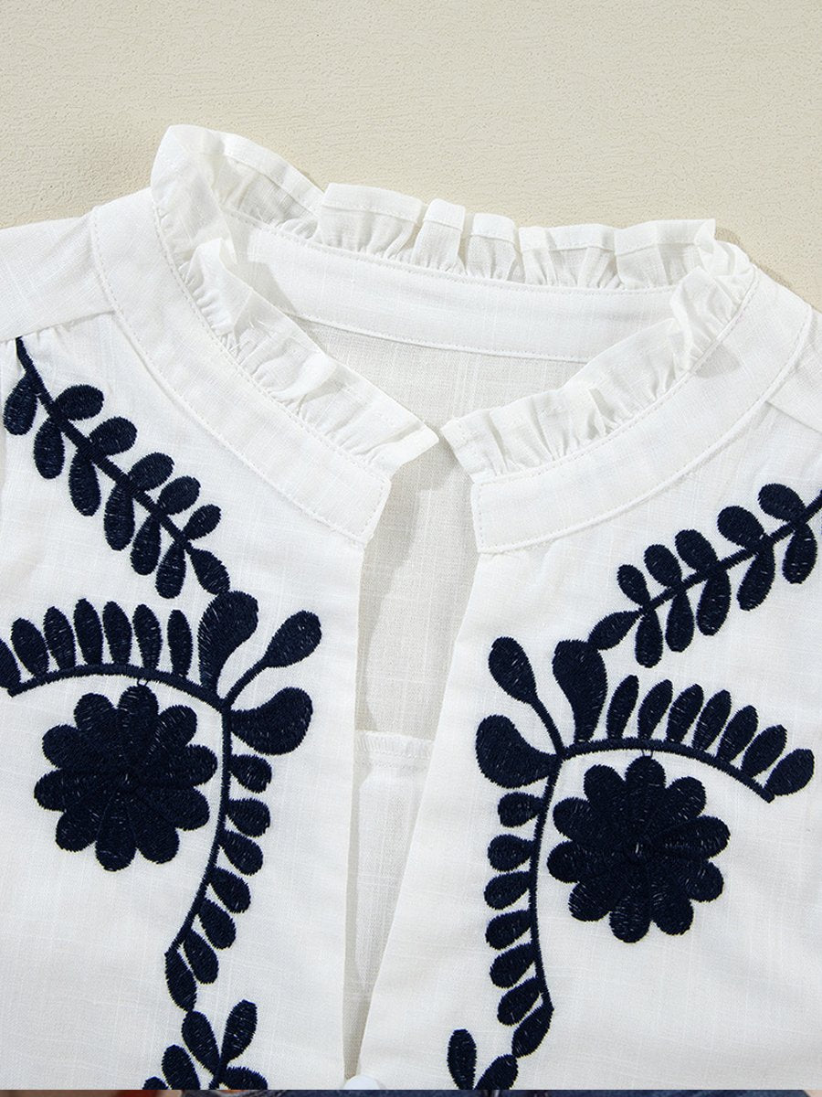 Women's Single-Breasted Long Sleeved Floral Embroidered Blouse
