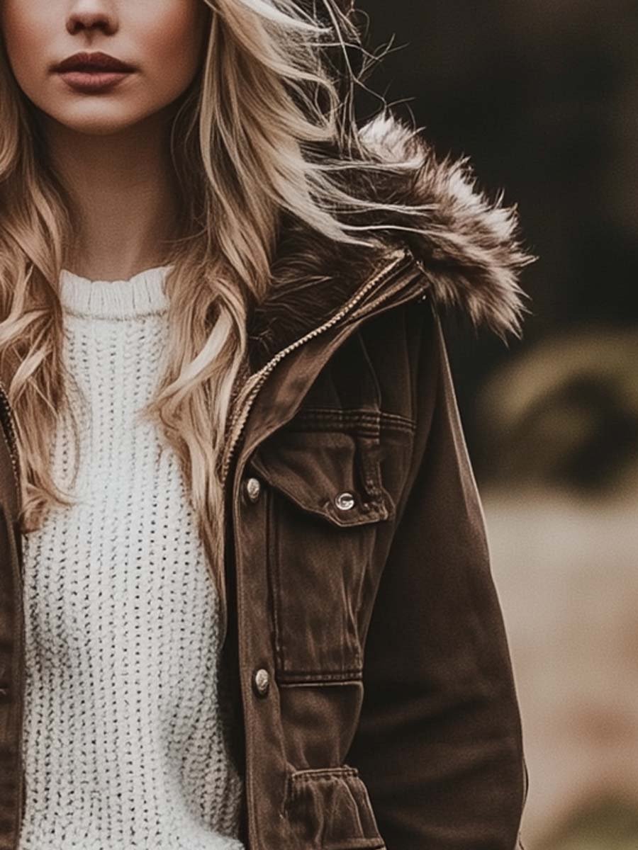 Vintage style with fur hood: A classic design featuring a cozy faux fur-lined hood, blending retro aesthetics with modern functionality.
