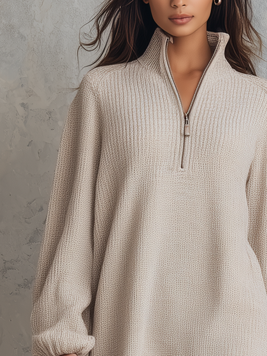 The Zipper Collar Lace Hem Knitted Mini Dress offers a stylish blend of casual and chic, perfect for any fashion-forward individual's wardrobe. The dress features a unique zipper collar that adds a modern twist to the classic knitted design, while the lace hem provides an elegant and feminine touch. Crafted with comfort and style in mind, this mini dress is ideal for both everyday wear and special occasions.